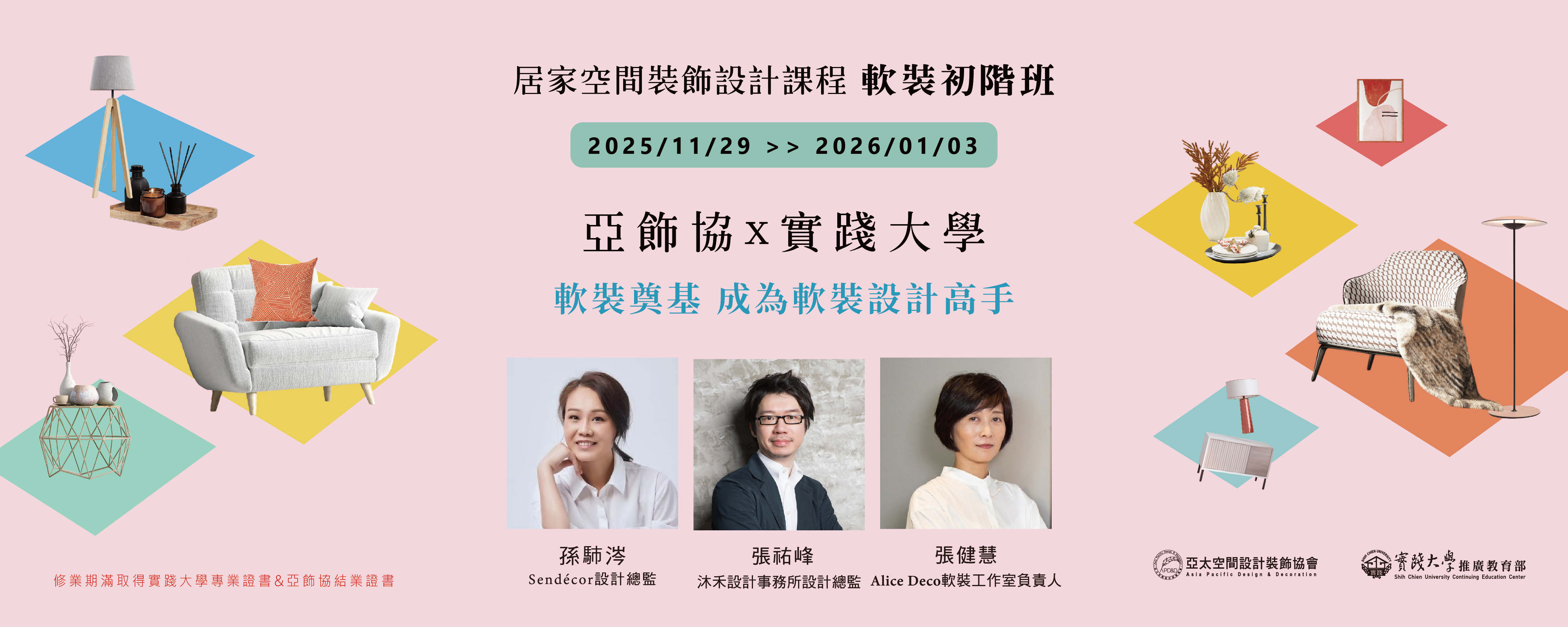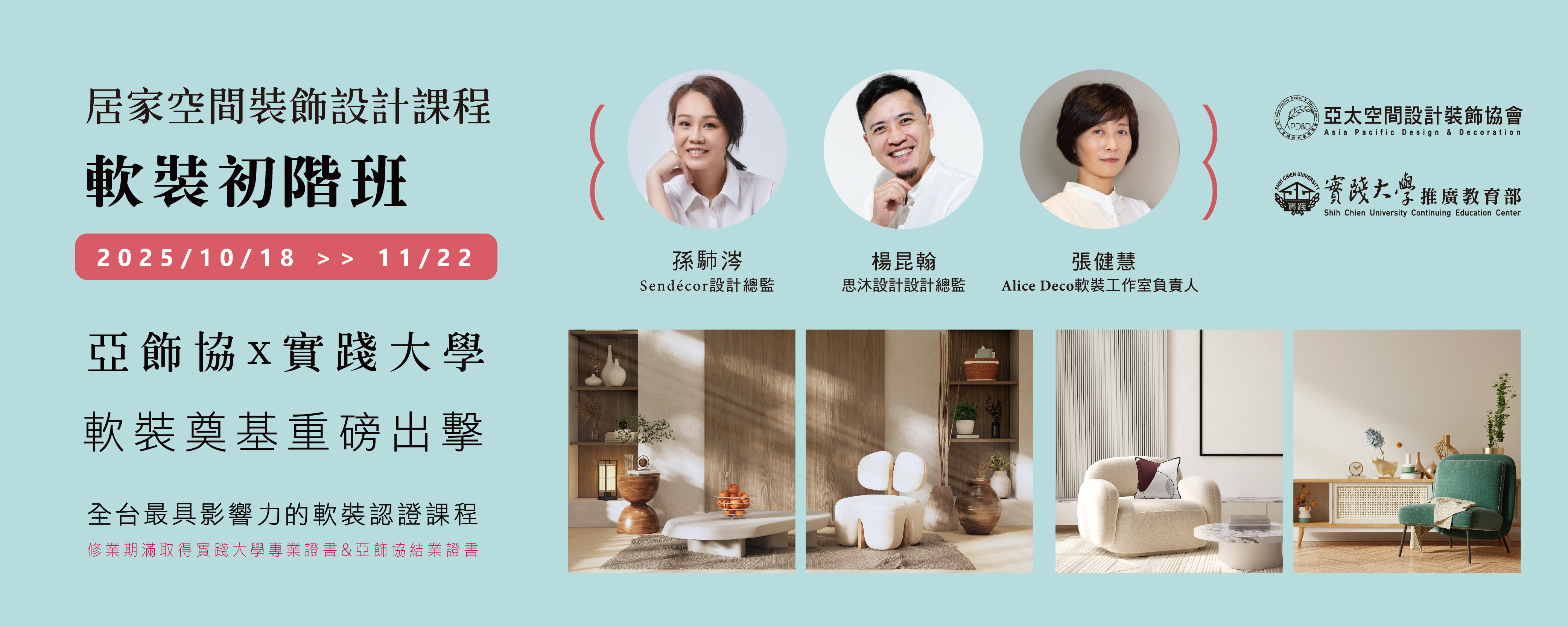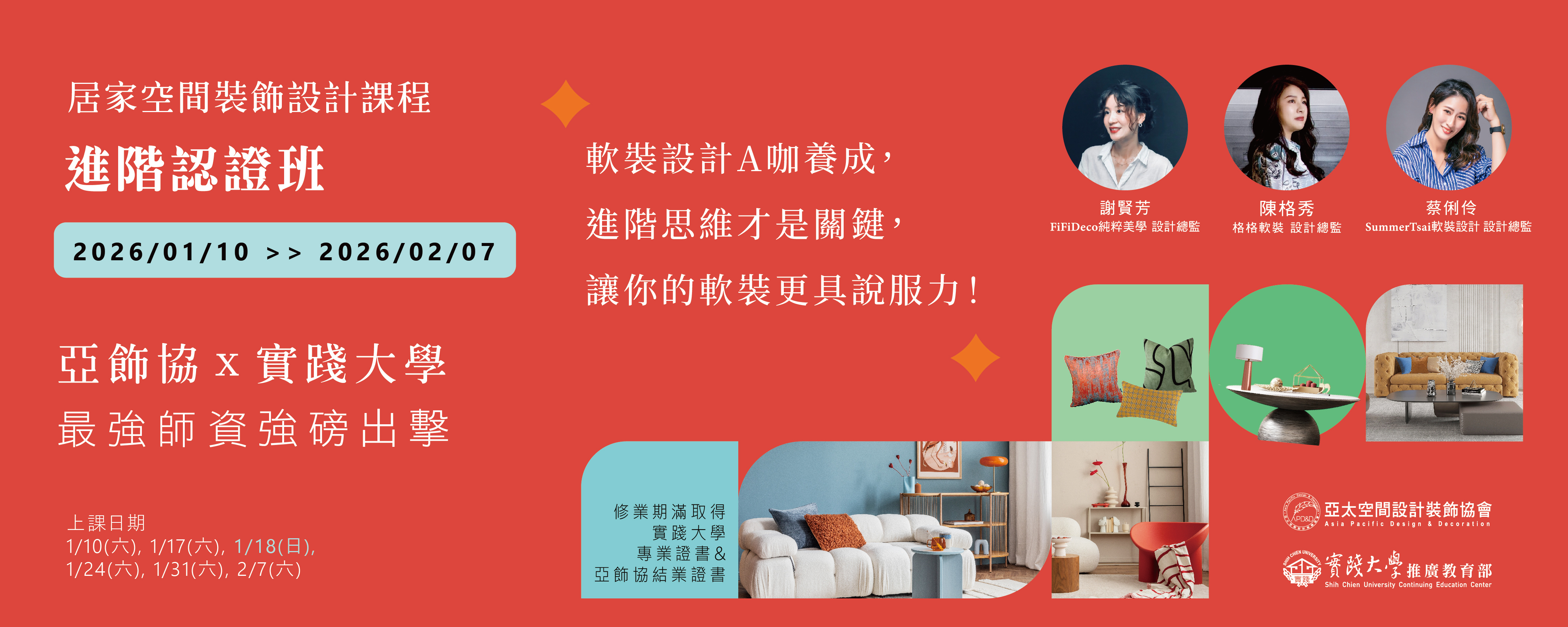 全台軟裝領域最具影響力的認證課程 - 亞飾協x實踐大學強強聯合~初階班、認證班~開課中~