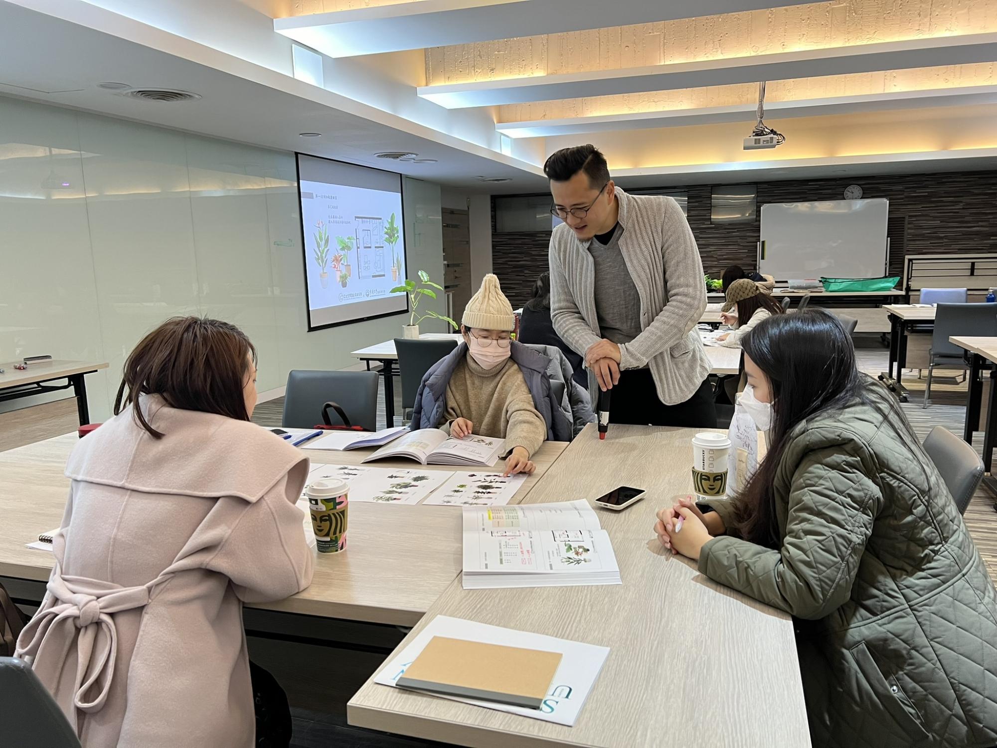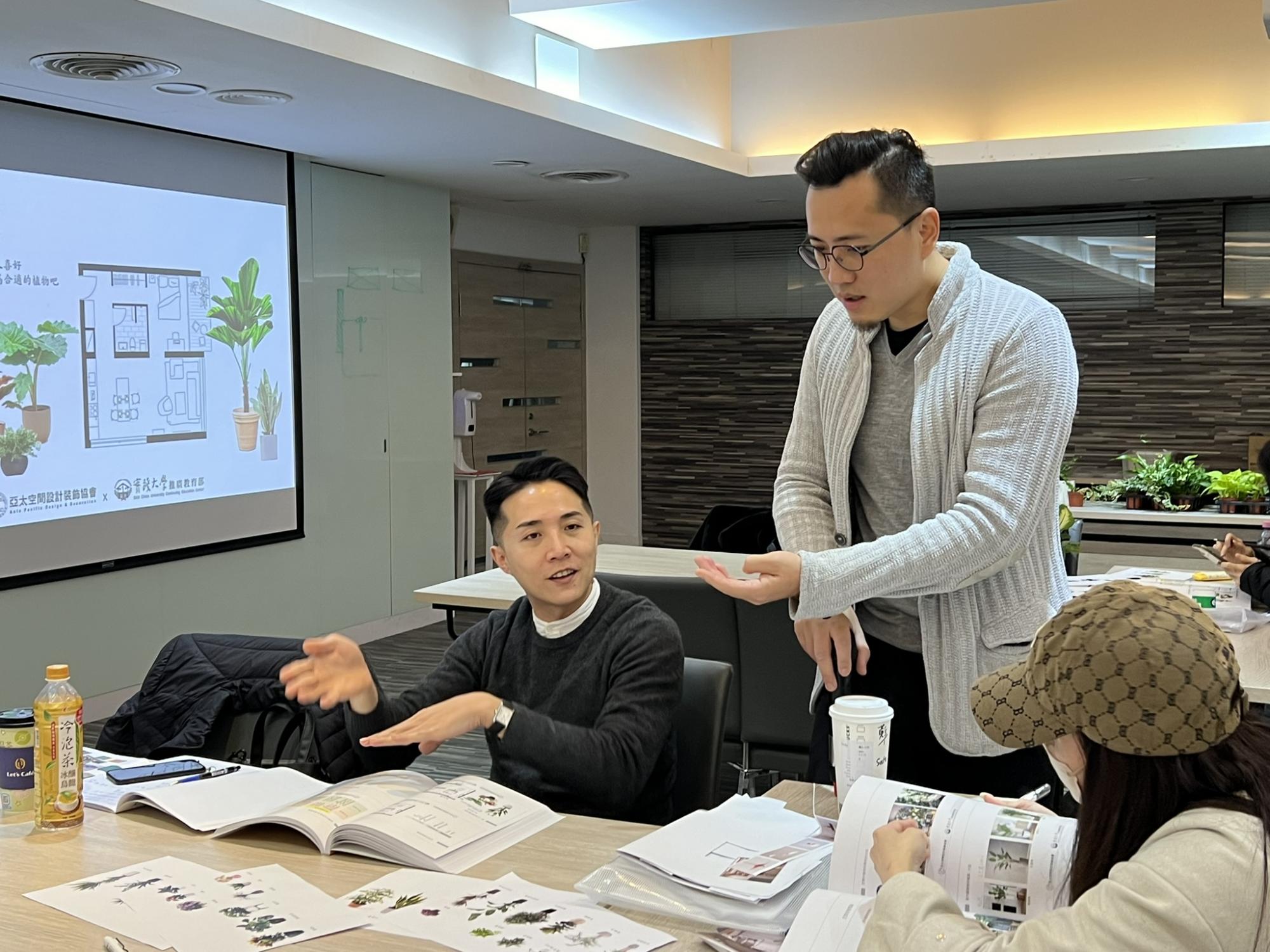 第1~2週軟裝基礎架構,第3週將植栽配置加入形塑風格之中,融會貫通再應用;同時也讓學員們親手操作種植植物,深化應用課程中所學,學習過程非常認真用心,發問、討論、筆記不間斷。